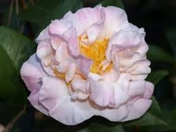 Medium, Peony form. Pale ivory pink with deeper pink shading at edge with white filaments and yellow anthers. (Very Fragrant)