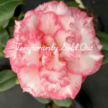 Large, Semidouble. Dark red blotched white.